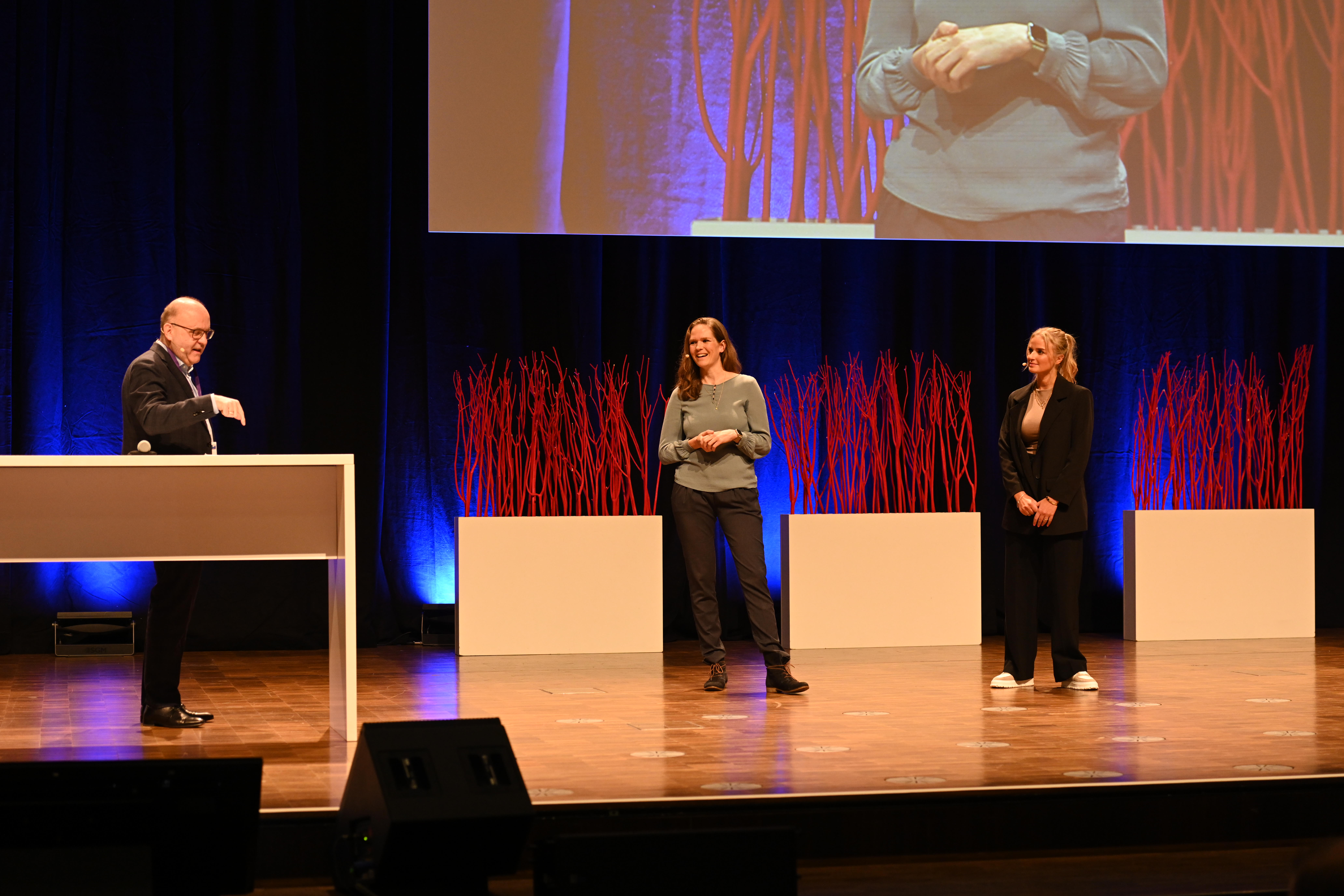Und auch das Programm konnte sich sehen lassen. So kamen die Besucher:innen in den Genuss, zwischen Vorträgen auf zwei verschiedenen Bühnen zu wählen. Am ersten Kongresstag begrüßte Moderator Prof. Andreas Kaapke auf der großen Bühne unter anderem Speaker von Rewe, Douglas, Zalando und Adidas zu den Hot Topics Künstliche Intelligenz, Agile Work sowie POS & Checkout. Auf der zweiten Bühne empfing Moderatorin Imke Hahn aus dem EHI-Forschungsbereich IT u.a. Referent:innen von der Schwarz IT, Esprit und Fressnapf zu den Themen Nachhaltigkeit im Einzelhandel und Planungsprozesse.