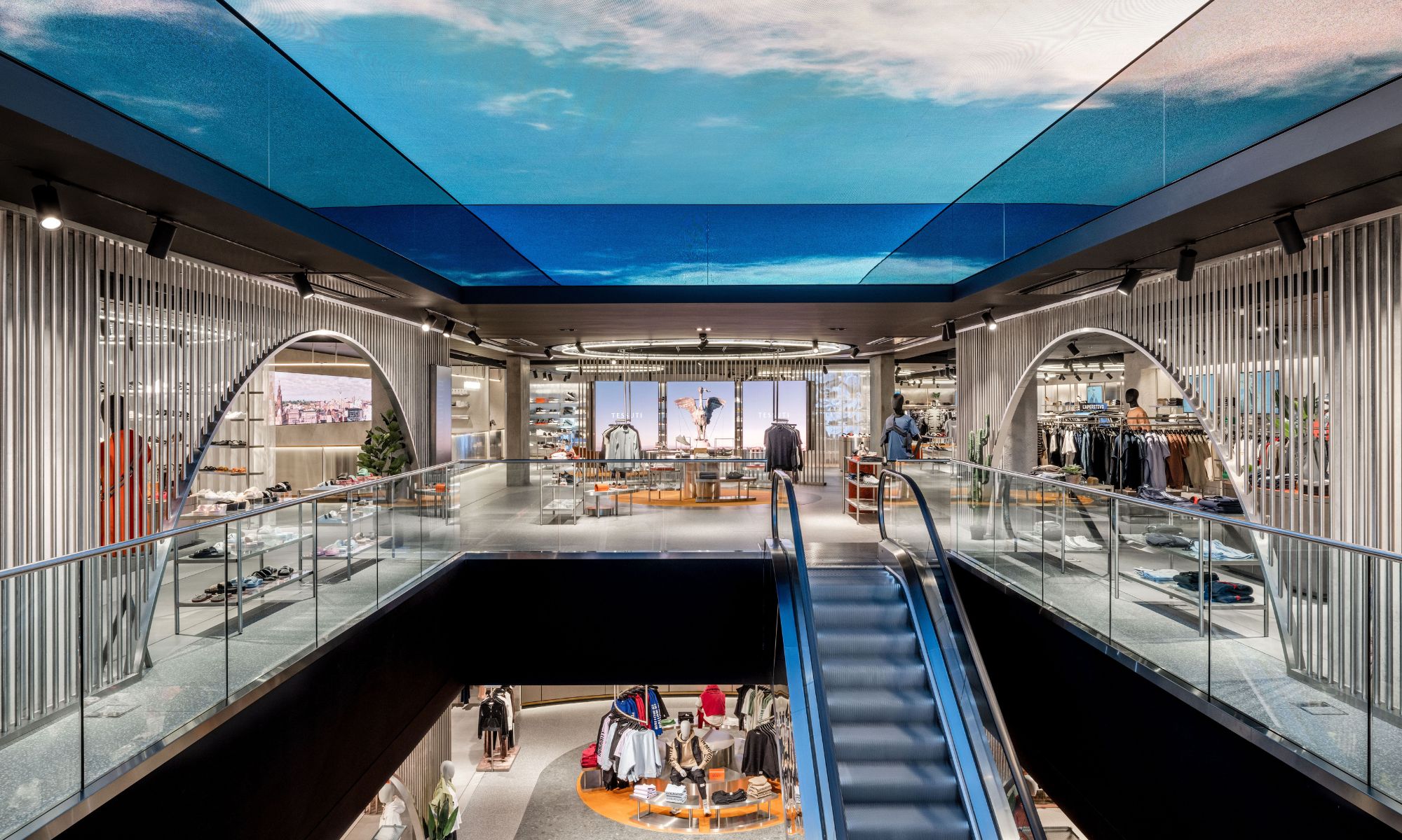 Das 1985 gegründete Modehaus Tessuti gilt mit seinen Filialen als beliebte Shopping-Destination für Designerkollektionen. Das neue Flaggschiff wurde im August 2022 eröffnet und erstreckt sich über eine Fläche von mehr als 2.000 qm auf drei Etagen. Das Storedesign besticht durch eine Kombination aus historischer Liverpooler Ingenieurskunst, klassischem italienischen Stil und modernen digitalen Elementen. So befindet sich beispielsweise ein großer Screen im XL-Format in der Mitte des Stores. Zudem sind Materialien wie Terrazzo, Messing und Marmor ziehen sich durch alle Etagen des Ladens und verweisen auf die italienischen Wurzeln des Unternehmens. Neonfarbene Leuchten und orangefarbene Stoffe, gebürstete Edelstahloberflächen und rote Fliesen unterstreichen den modernen Charakter des Stores.