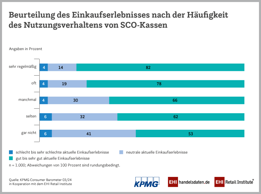 „Das Einkaufserlebnis im stationären Handel hängt unmittelbar von der Bezahlabwicklung ab. Die Kundschaft schätzt die standardmäßige Nutzung von SCO-Kassen als beschleunigte und autonomere Option und nimmt bei regelmäßiger Nutzung dieser Systeme den gesamten Einkaufsprozess positiver wahr – und das betrifft nicht nur die jüngeren Marktteilnehmer“, erklärt Dr. Tobias Röding, Projektleiter beim EHI, die Ergebnisse der