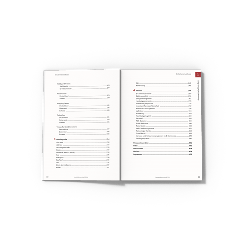 Daten zu Handelsthemen: E-Commerce-Trends, Elektromobilität, Energiemanagement, Handelsgastronomie, Immobilien/Expansion, Inventurdifferenzen/Sicherheit, Klimaschutzmanagement, Ladenbau, Marketing, nachhaltige Logistik, Personal, POS-Systeme, Public Relations, Retail Media, Self-Checkout- und Self-Scanning-Systeme, Technologie-Trends, Travel Retail, Versand- und Retourenmanagement, Zahlungssysteme, Online-Payment, Mobile Payment
