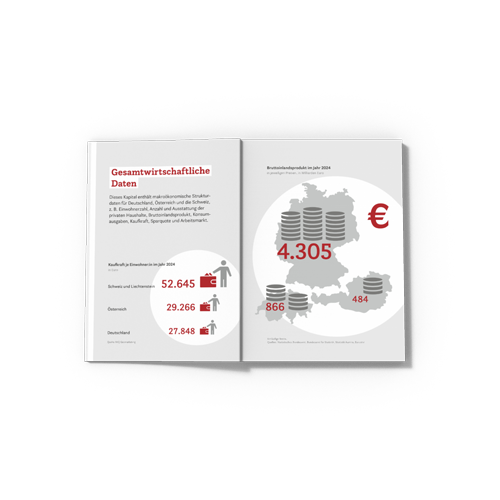 Gesamtwirtschaftliche Daten aus Deutschland, Österreich und der Schweiz: Bevölkerung, Privathaushalte, Bruttoinlandsprodukt, Konsumausgaben, Verbraucherpreisindex, Kaufkraft, Ausstattung, Sparquote, Beschäftigung