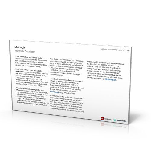 Die Studie „E-Commerce-Markt Deutschland 2023″ von EHI und eCommerceDB liefert Ihnen einen detaillierten Überblick über die Top-1.000 B2C-Onlineshops (zu denen auch hybride B2C-Markplätze zählen) in Deutschland, sortiert nach Netto-E-Commerce-Umsätzen im Geschäftsjahr 2022.