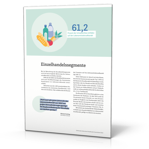Mit der Studie „Stationärer Einzelhandel Deutschland 2023“ erhalten Sie umfassende Informationen zu den Top 1.000 Vertriebslinien im stationären Einzelhandel in Deutschland.