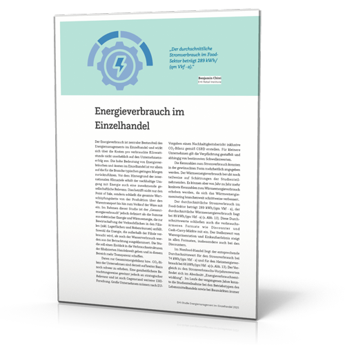 Die EHI-Studie Energiemanagement im Einzelhandel 2025 zeigt die zentralen Energieverbrauchszahlen aus dem Verbrauchsjahr 2024, sowie weitere relevante Daten zur Energieeffizienz im Einzelhandel. Es konnten Daten von 46 Handelsketten aus Deutschland, Österreich und der Schweiz mit über 42.000 Filialen und einer Verkaufsfläche von über 52 Mio. Quadratmetern erfasst werden.
